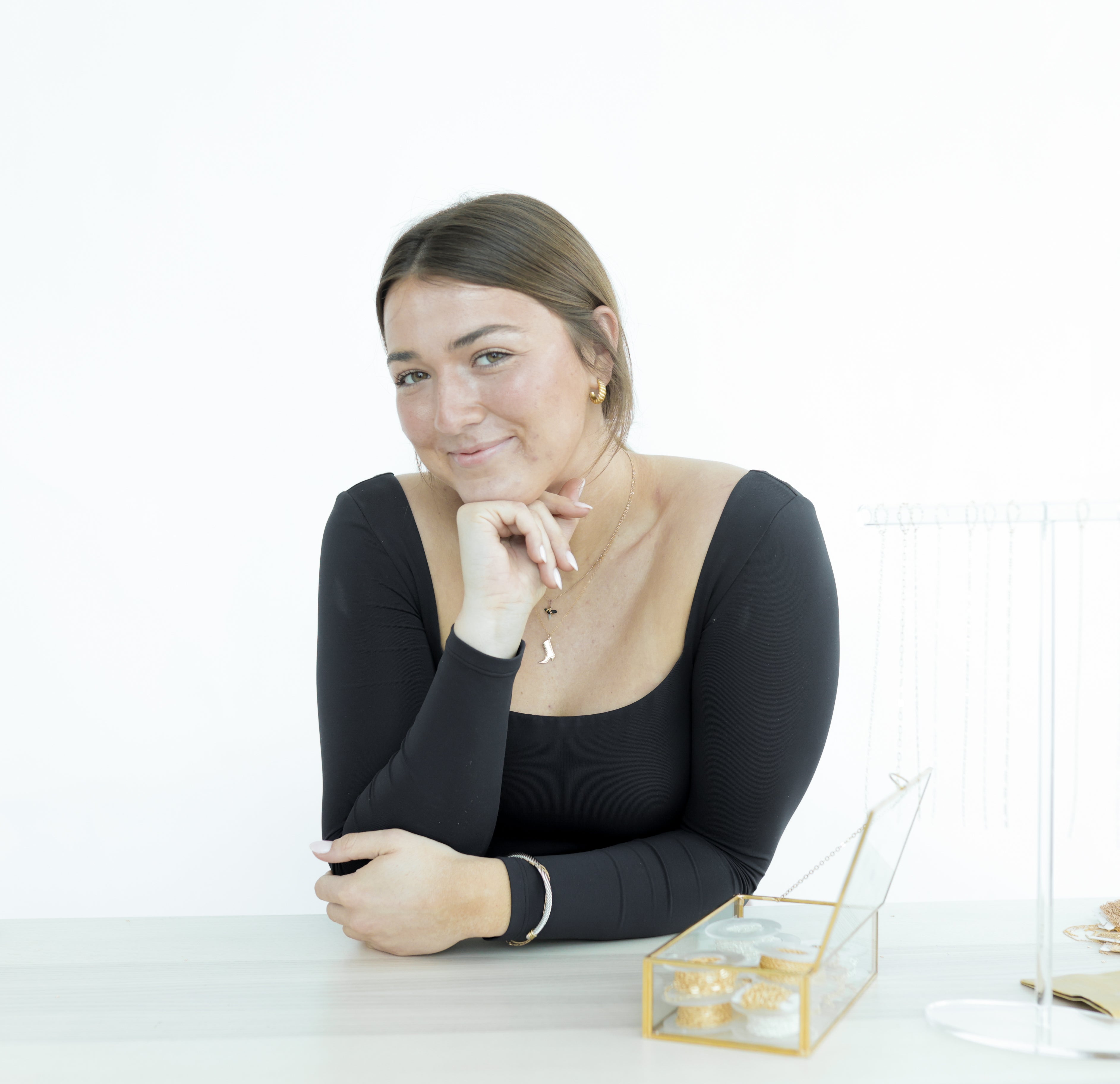 Hi! I'm Sarah, founder of Shark Bite Jewelry, and All My Love Permanent Jewelry! I started Shark Bite a little over two years ago during my junior year at UNCW. I first made a necklace just for me, but eventually, everyone started asking where I got it, and thus, Shark Bite Jewelry was born! Each piece of jewelry you purchase from my store is uniquely hand crafted by me and each piece is one of a kind!